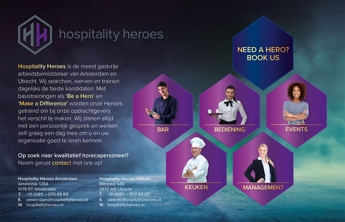 Hospitality Heroes, een horeca-uitzendbureau actief in de regio’s Amsterdam en Utrecht.