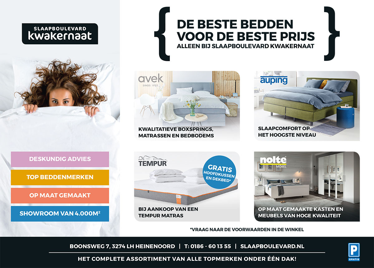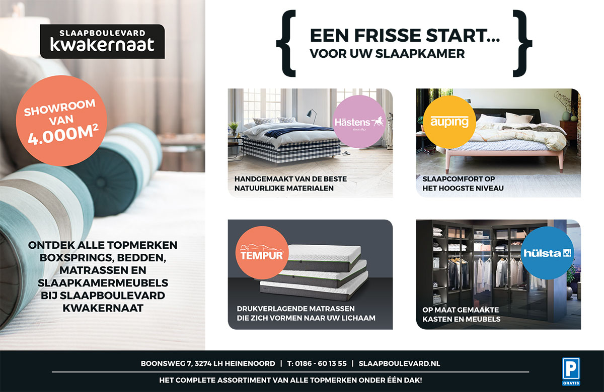 Slaapboulevard Kwakernaat, een grote beddenspeciaalzaak in de regio Rotterdam.